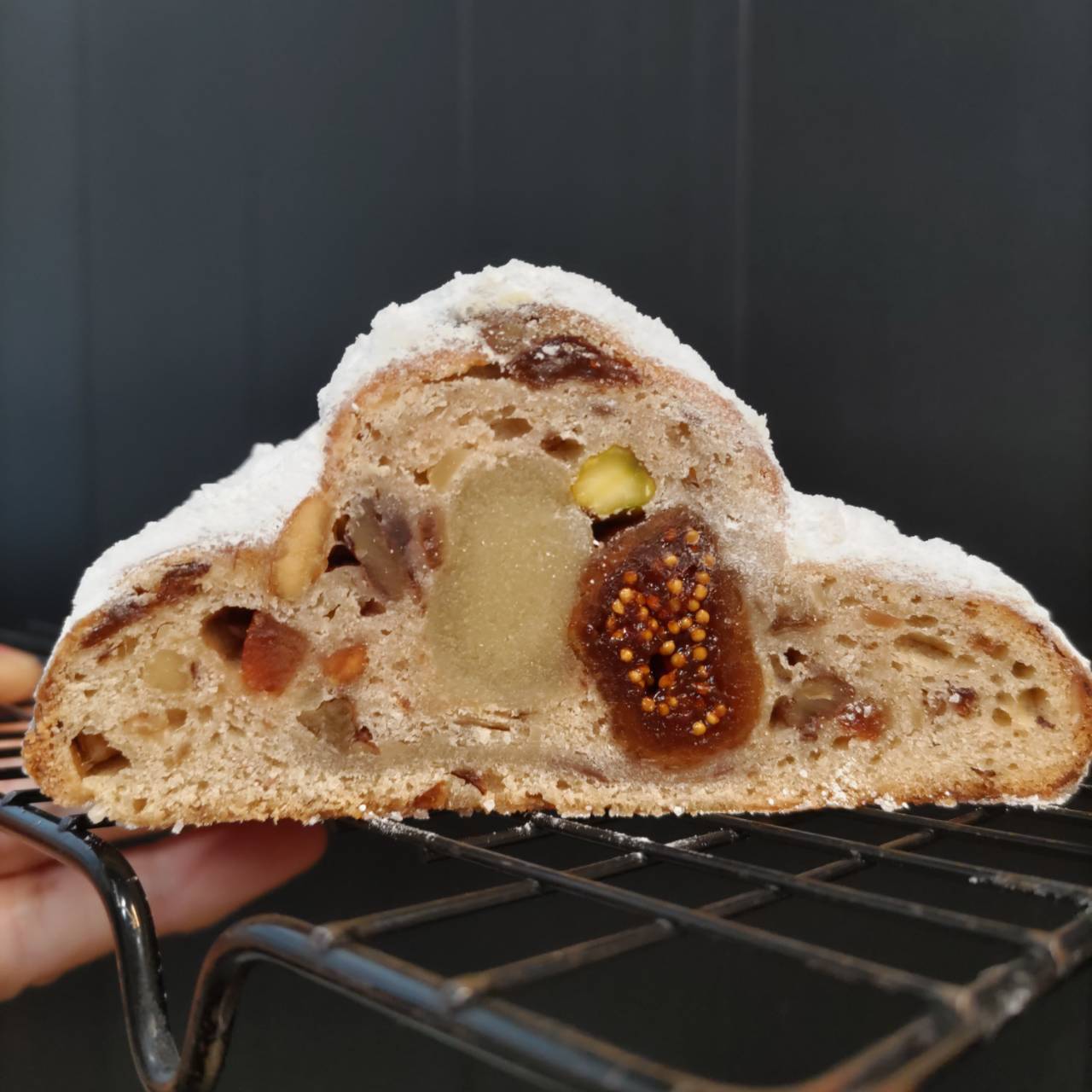 有名パン屋御用達のうめはらフルーツミックスに加えレーズン2種類。クランベリー、自家製リンゴジャムそして、蒸してふっくらさせたドライ無花果もたっぷり後入れしました。