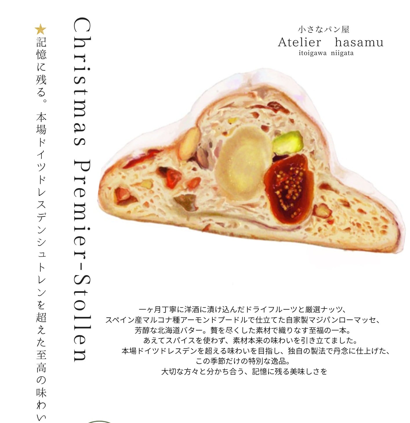 特別な日や贈り物としても最適なシュトレンは、日常にちょっとした贅沢をプラスしてくれます。ぜひこの機会に、職人の手による美味しさをお楽しみください!